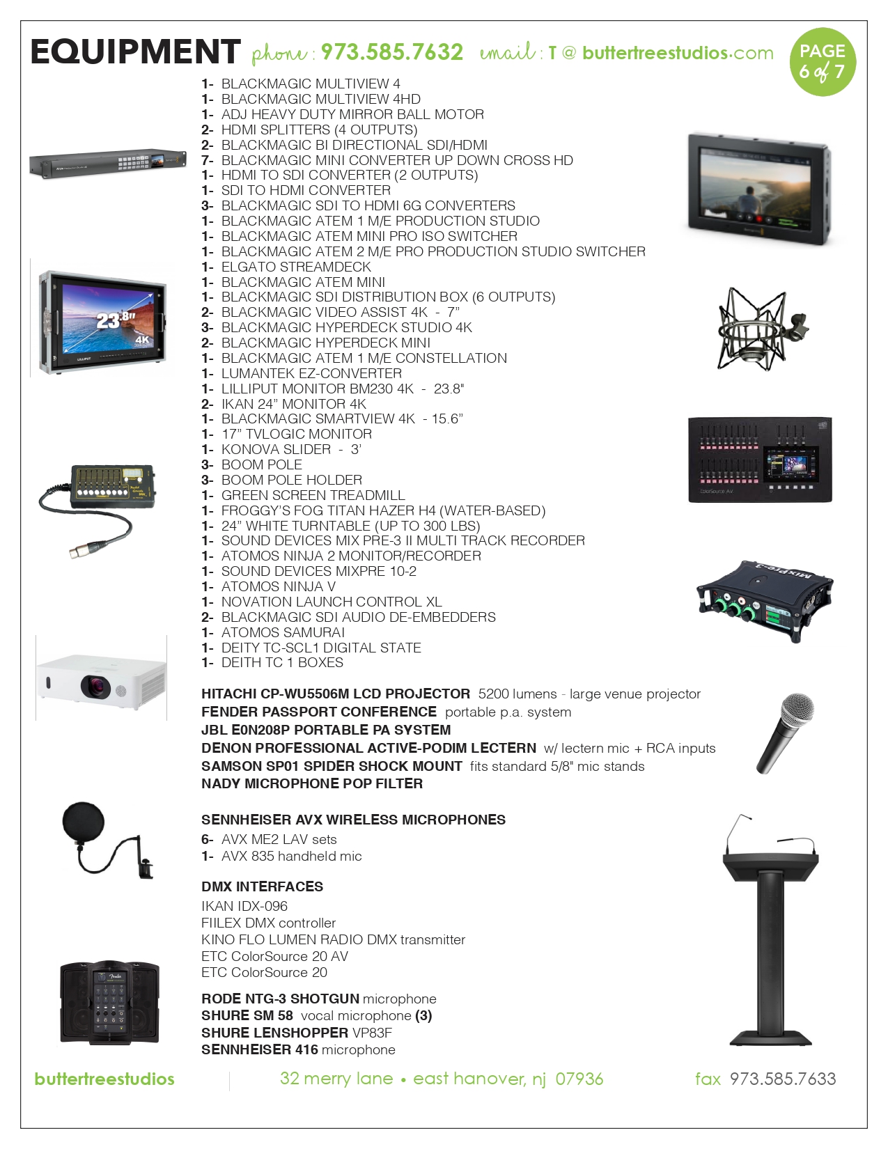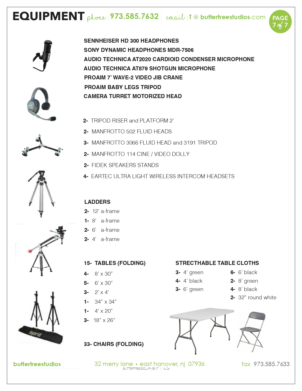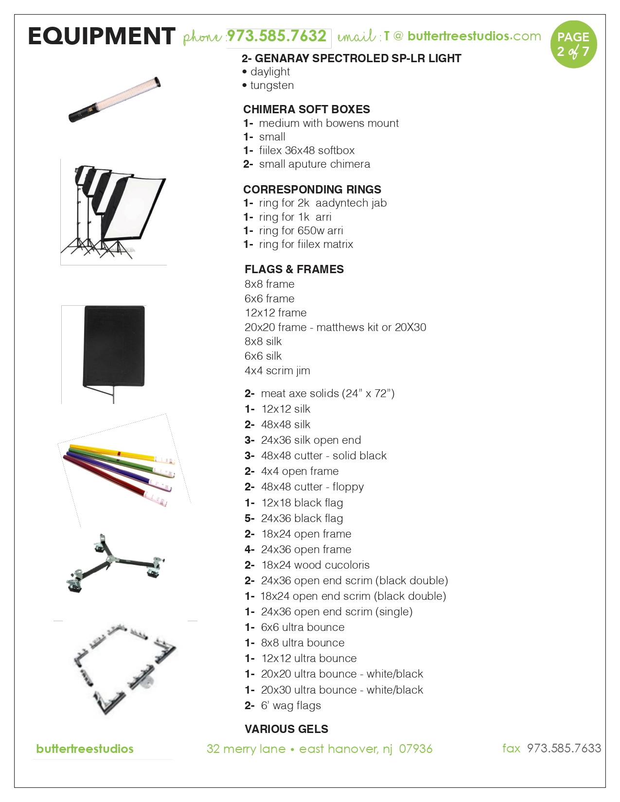 Equipment List – Butter Tree Studios