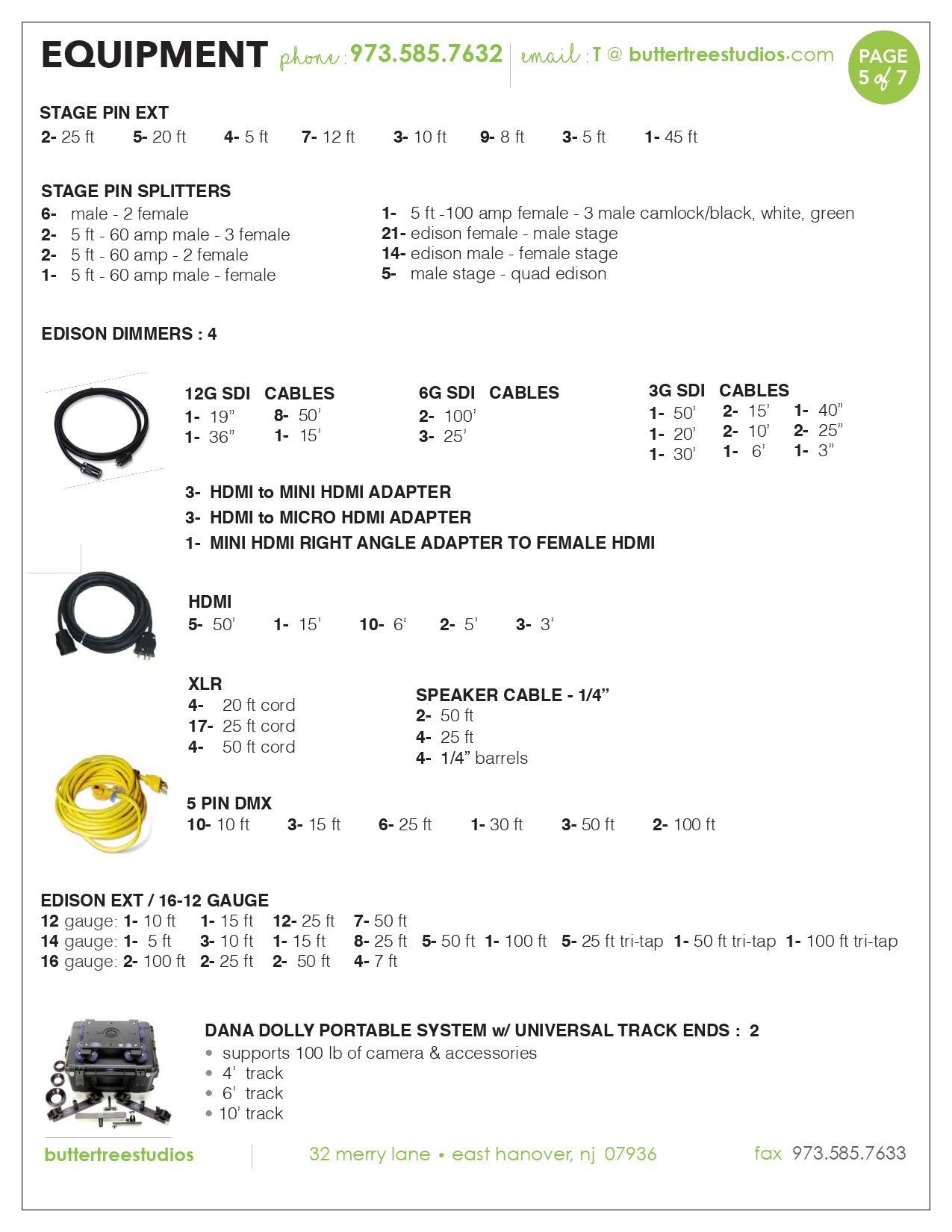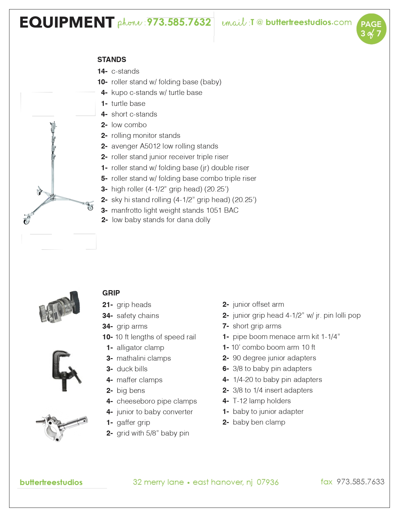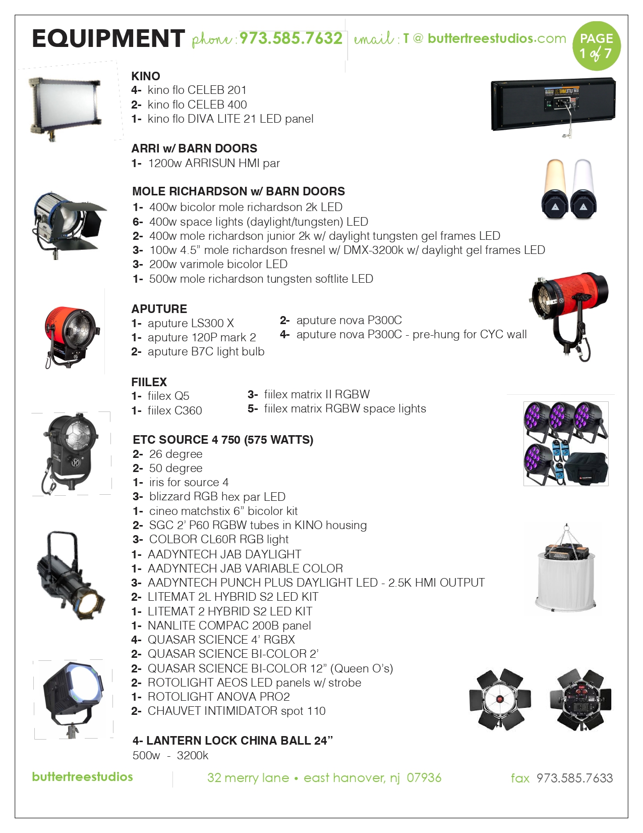 Equipment List – Butter Tree Studios